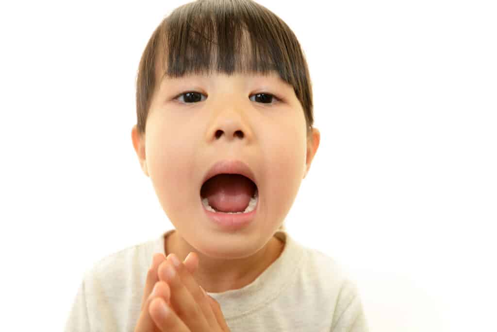 無意識にお口がポカンと開いている場合は正常な舌の位置になるようにトレーニングをして鼻呼吸に改善するとよいでしょう。