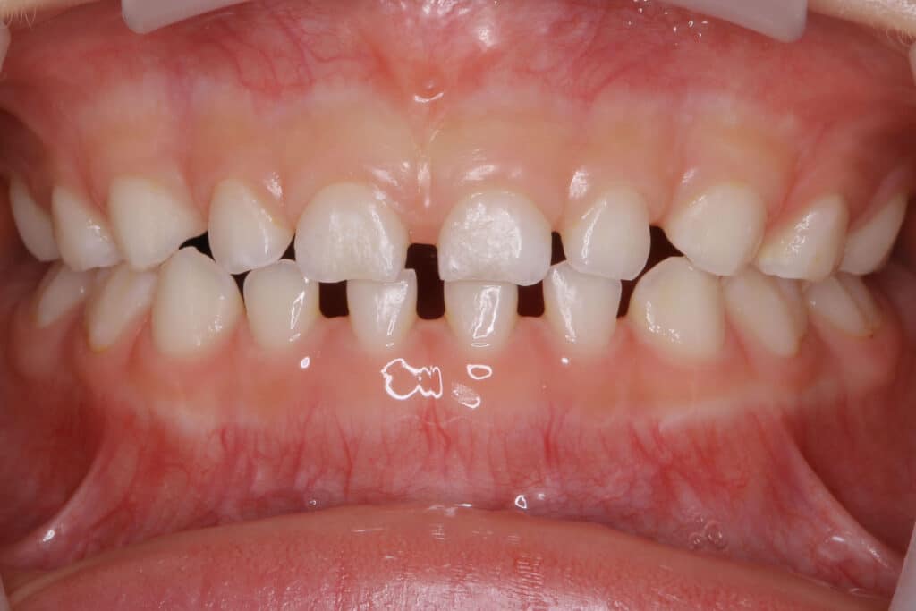 「正中離開(せいちゅうりかい)」は前歯2本にすき間がある症状です。「すきっ歯」ともいいお子様によく見られます。