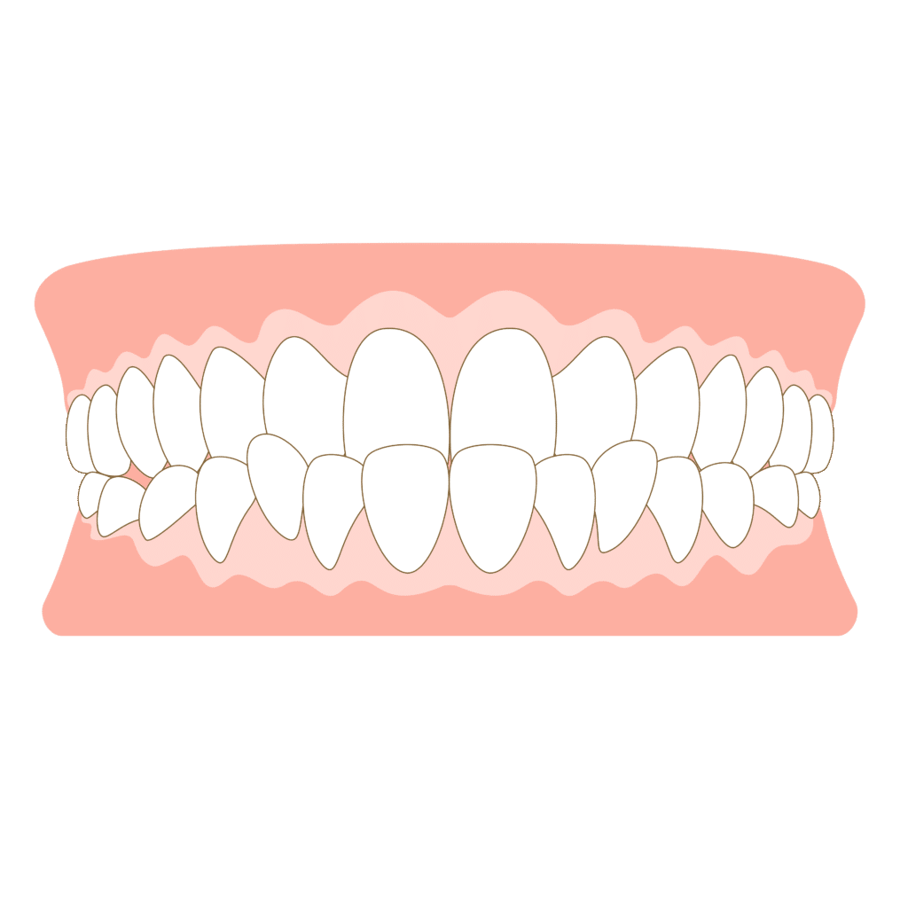 歯並び検査の結果、骨格的には問題がないものの、下の前歯が前方へ出ている場合は、歯並びに原因があります。